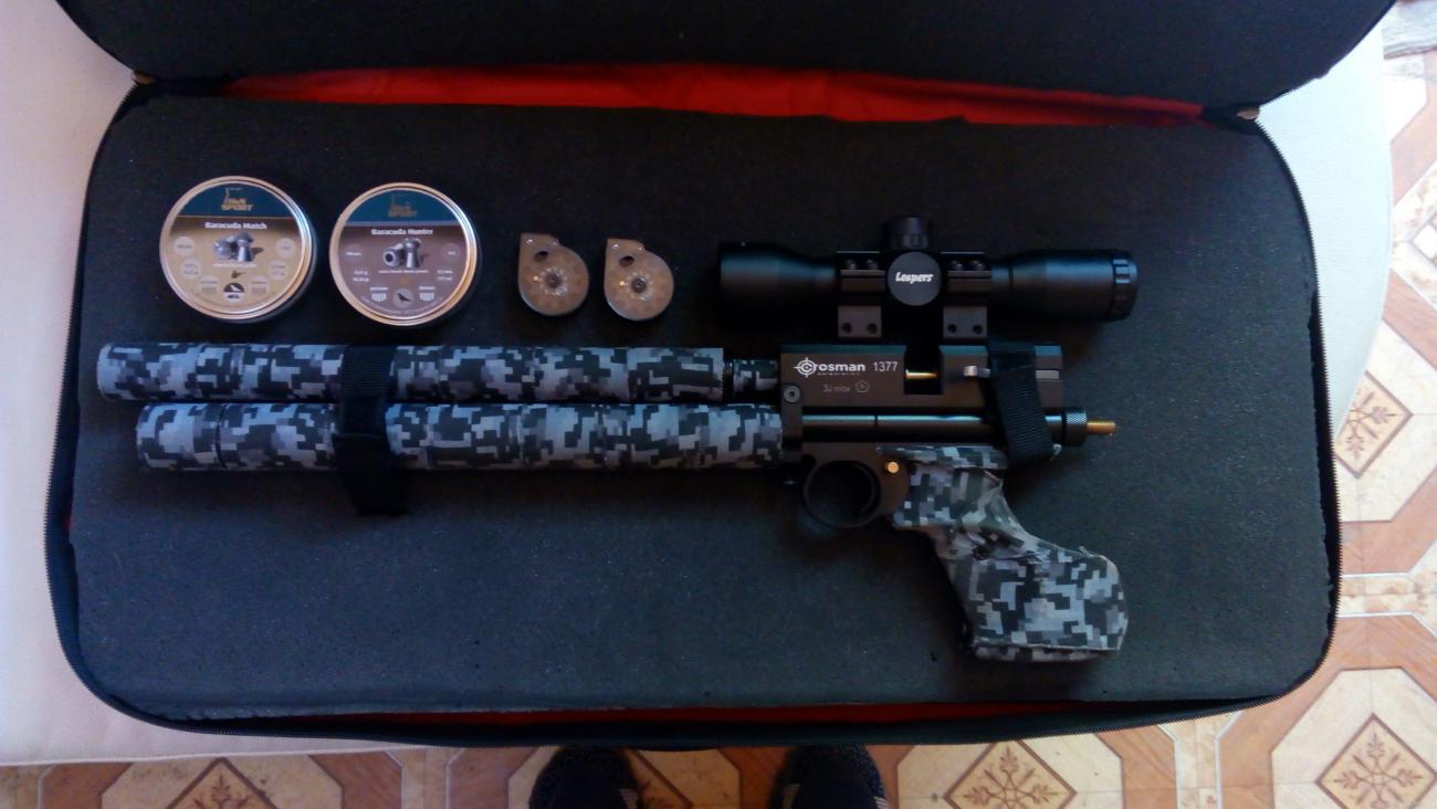 Пест был куплен моим товарищем у Саши из Легионера. Ничего не перенастраивалось. Товарищ наигрался. Ствол Кросман, ручка Кости, скорость 220 баракудой. Комплект как есть на фото.