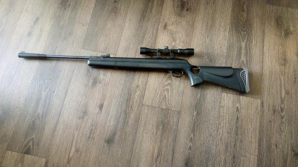 в комплекте прицел типа Гамо 4-32 (так написано но Х.З.) настрелял не больше 100 пулек так и пылится цена 12