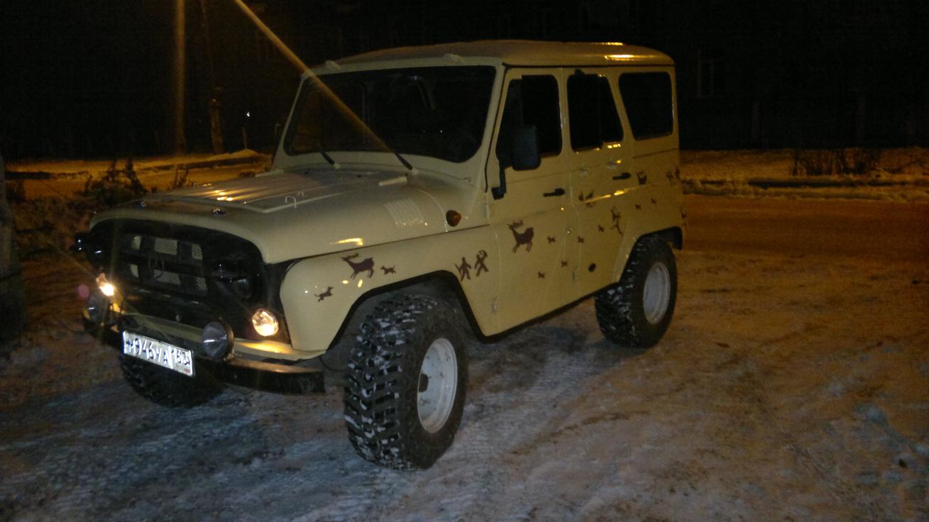 цвет песочный. двигатель 402. полный капремонт в 2010 году. новая ходовая. КПП и раздатка полностью исправны. покраска 2011 год. пробег 1000 км. резина Мудзилла на широких дисках. лифт кузова. тонировка. музыка.новая оптика + светофильтры. противотуманки. и много еще всяких вкусностей. цена 140 т.р. на родных колесах цена 105 т.р.