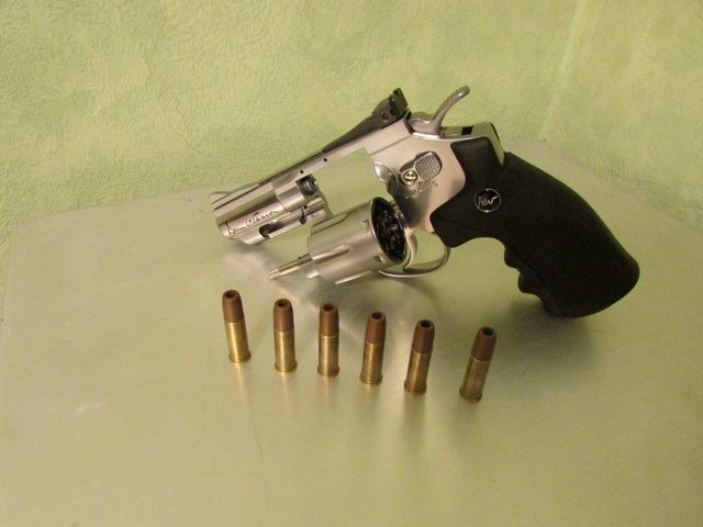 Продаю пневматический револьвер ASG Dan Wesson 2.5 Silver, практически новый. Длина ствола 2,5 дюйма, цвет серебряный. Полный комплект: револьвер, коробка, литература, комплект ЗиП, планка вивер для колиматора или ОП, ключик, приспособа для скоростной зарядки, комплект фальшпатронов. Можно докупить фальшпатроны для стрельбы свинцовыми пульками и пиротехническими. (см. youtube). Цена 5000 руб.