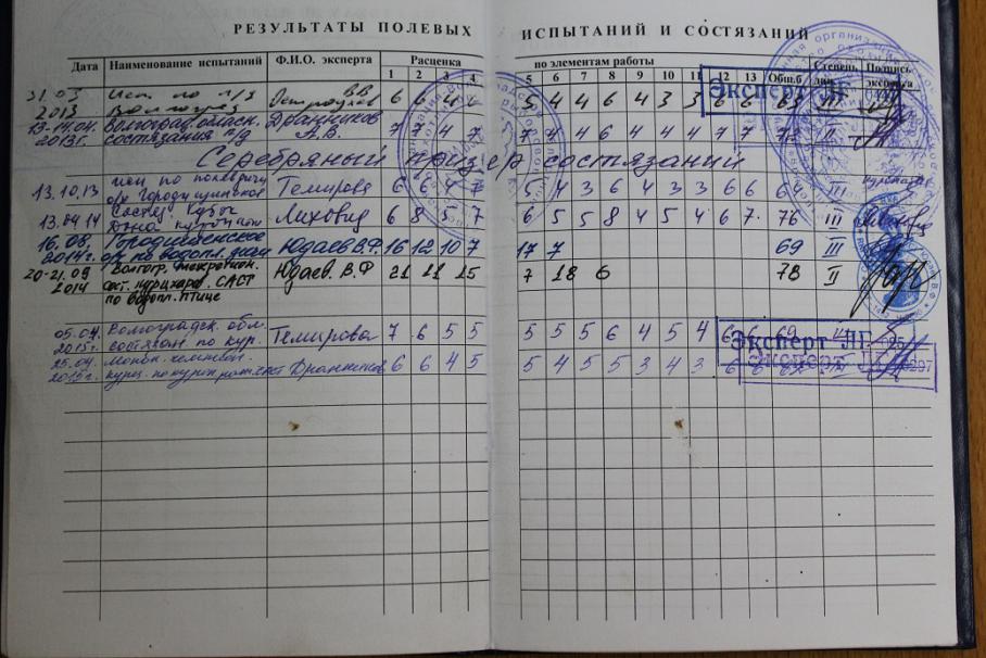 Порода: КУРЦХААР Дата рождения: 21 мая 2016 года В продаже: кобель - 4 (3 кофейных,1 в крапе); сука - 3(2 в крапе, 1 кофейная) Место нахождение щенка: г. Тольятти Вязка спланирована племенным сектором секции ЦКОС Волгоградского ОООиР Цена: 30.000 (разумный торг) комплект документов : РКФ,РОРС Владелец: Чепурных Павел тел. 8(917)1403025,8(927)8918376, 8-9879-619439 Татьяна. Мать: Еврона - 01.05.2013 г.р. ВПКОС 4261/14, РКФ 3825292; вл. Чепурных П.В Окрас: кофейный. Экстерьер: отлично. Племенной класс: первый. Полевые дипломы:1-ДIII,1-ДII-тетерев, 4-ДIII перепел,1-ДII,1ДIII утка1-,ДII куропатка. 3-место на Ежегодных состязаниях МОКО "Немецкий курцхаар" по перепелу 12-14 июня 2015. от: О. AMIGO Z CZARNEGO DWORU UKU 0014087 Гапон А.А М. Карма ВПКОС 3452/09 Вл.: Карпухин И.М 5-д III п/д,3-д IIу,1-III у,3-д III к/с,III-волок Отец: Сарбон 15.06.2010г.р. , ВПКОС 3998/13. РКФ 2743905 вл. Апраксин А.В. Кофейно пегий в крапе. Экстерьер: отлично. Племенной класс: Элита. Титулы: Серебренный призёр на Волгоградских состязаниях пополевой дичи 13-14 апреля 2013г Полевые дипломы: 1-II,5-дIII п/д , 1-II,1-II утка от: Отец- п.п.БЕРТ ВПКОС 3273/07 Владелец: Штепа Алексей Александрович мать-МЕРСЕДЕС ВПКОС 3451/09 Владелец: Кречин Андрей Васильевич Последний раз редактировалось mazdred; 22.05.2016 в 22:52. |