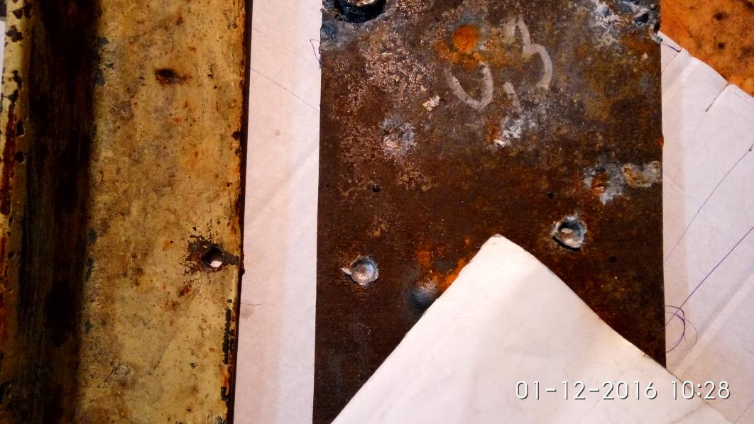 Дистанция 150м., патроны "барнаул" п/о. На фото с лева, уголок толщиной 6мм, пробитие сквозное. На фото с права, толщина железа 8мм, пробитие на глубину 5мм. В верху следы, от 7,62*39.