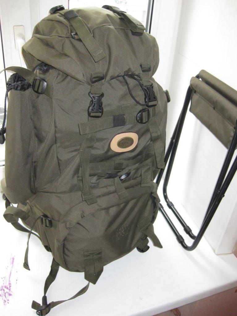 Надёжный многофункциональный рюкзак, снабженный дышащей вентилируемой спинкой, металлическим каркасом в виде вставляемого стульчика и влагонепроницаемым дном. Также имеется утепленный карман для хранения и переноски термоса, на плечевой лямке есть карман, в который можно положить любой гаджет, необходимый Вам в вашем походе (смартфон, мобильный телефон либо навигатор). На мягком фиксирующем поясе расположен патронтаж. Складной стул хранится в спинке рюкзака и при необходимости вынимается из него, стул выполнен из прочной стали и выдерживает нагрузку до 120 кг. В крышке рюкзака имеется защитный чехол от дождя, который не позволит промокнуть Вашему снаряжению даже в самый сильный ливень.