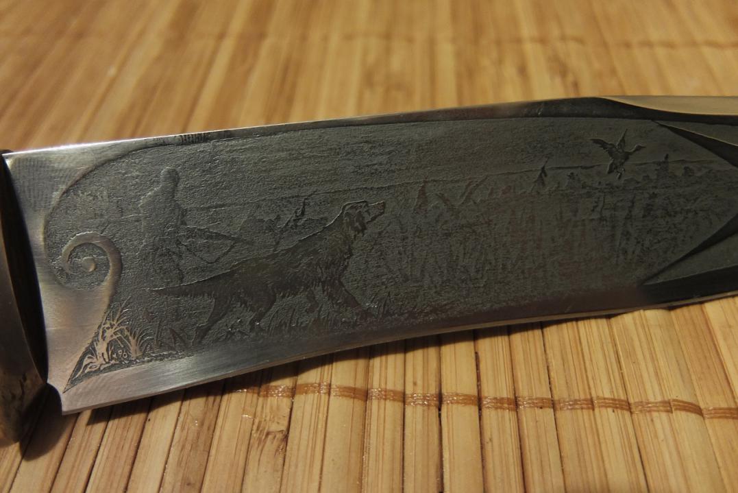 К весенней доделываю ножик. Маркировку стали не знаю(кованная нерж.),рукоятка дуб,вставки рог лося.Ножны первый раз шил:). Нож пока не заточен.