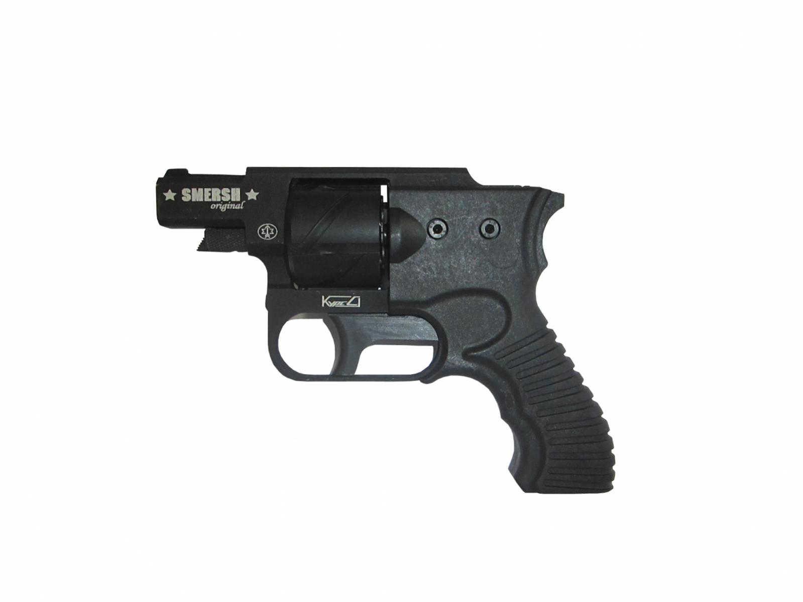 В наших магазинах в продаже появились Грозы, 01 и 021. Есть и другие модели: 041, 051, револьверы. Так же появилась новинка ОООП - револьвер Смерш РК-2 под калибр .45Rubber! Вложение 8344 SMERSH РК-2 — пятизарядный револьвер, разработанный компанией «Курс-С» (г. Сарапул) путем модификации сигнального револьвера РК-1, является оружием самообороны и предназначен для стрельбы патронами с резиновой пулей калибра 45 Rubber. Технические характеристики револьвера SMERSH РК-2: Габаритные размеры (мм): 175×39×125 (дхшхв) Масса без патронов (кг): 0,6 Вместимость барабана (шт. патронов): 5 Дальность травматического поражения (м): до 7 |