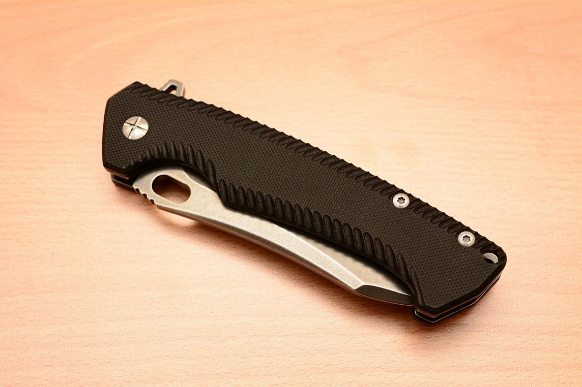 Steel Claw Резус А. Дизайн Андрея Рогожкина, флиппер, сталь на клинке D2, накладки - черная текстурированная G10, роликовые подшипники. 2000р.