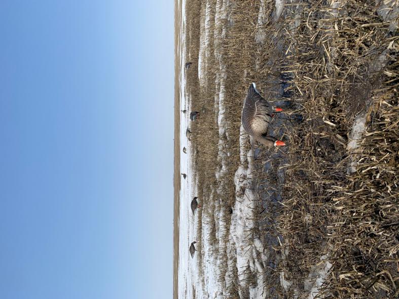 Сидим гусей маним, тут он… а у меня на подвесе всегда утиные манки (на случай). Осадка, призыв… Выстрел! До «королевского выстрела» (после выстрела падает дичь прямо в руки) осталось 1,5 метра. |