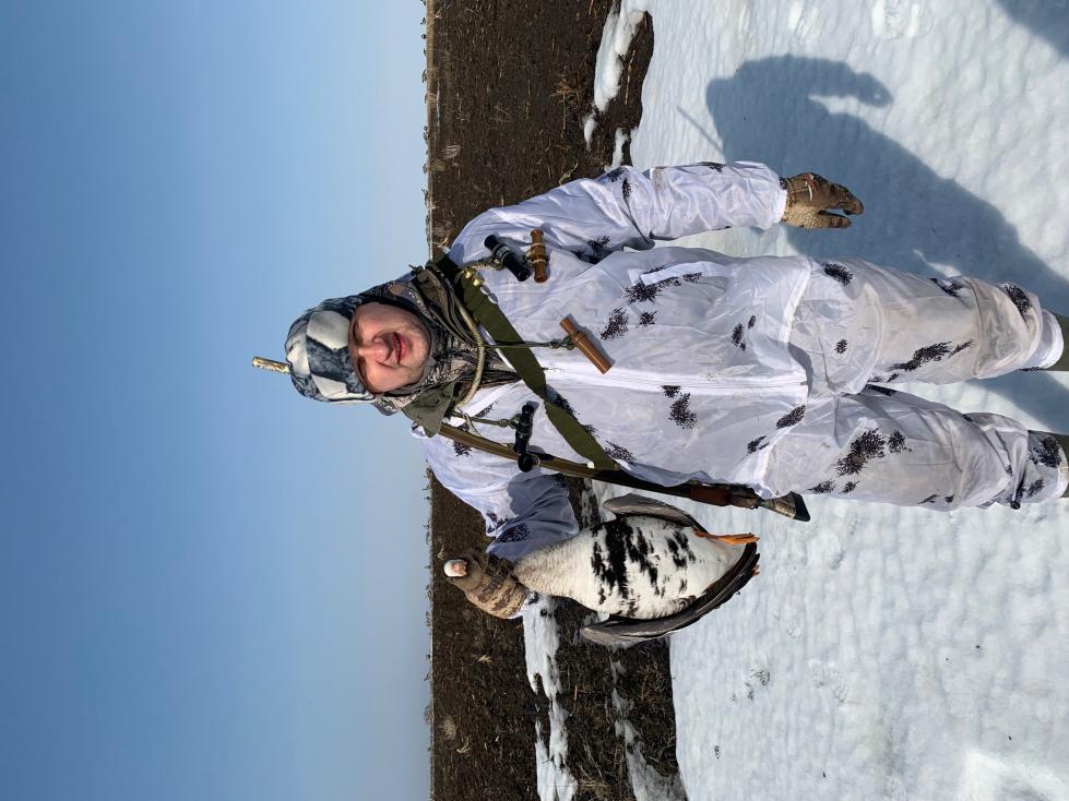 Начало Гусиного маршрута 2021г. началось с Юга Саратовской области. Началось с провала: 1500 км трассы и полевых дорог, 40 часов без сна, за то накопались, набуксовались, надышались свежим воздухом открывшихся южных полей и ни одного гуся в небе… Плохо искали? Не думаю... В Саратовской области местные когда говорят, что гусь пришел, это не пара стай в кислороде, это массовое передвижение птицы в полях и небе… Ровно через неделю заехали с другой стороны – на Север области… Надежды побольше, но до Ивантеевки – снега метр в поле! Ужас! На трех Нивах рванули в разбег по полям, а потом объединились, т.к. передвигаться по одному было не возможно… Решили двигаться южнее. Охотников – конкурентов настолько много, что решение не заставило себя долго ждать – пробиваемся в самую «катастрофу», подальше от людей… Бились долго, как положено гусятникам, все глубже в грязь и горы снега. И как поется в песне у талантливого охотника – поэта Артема – «Удача любит только терпеливых…» Нашли поле и слабую концентрацию гуся. На поле просо, граница дискованная кукуруза и огромная лужа – снежица. Поле растаяло на 90%. Ставим лагерь и идем расставлять чучела. Грязь как положено 10 см, налипает на сапоги, земля дальше промерзшая, значит копать не получится… но надежда и азарт от предстоящей охоты глушат усталость… Быстро в лагерь – спать, а в 3-00 подъем и в поле. Маскировались в снегу (20 см.) – в низине на ковриках с белым укрывным материалом, в белых маск-костюмах. На улице минус 3… Расстроились конечно, обещали оттепель и туман … Час, второй, третий, четвертый… нет гусей. Солнце светит ярко, разогрело к 8-00, полетели тихонько на высоте … На север летят… Вдруг из-за холма на котором чучела налетает стайка гуменников, молча, 9 выстрелов из двух стволов и все в молоко…. Обида… В бинокль видели большие стаи гусей – в основном гуменников… И вот из-за спины налет… С голосом… Да какой налет – идут «матросики белолобые» - круг, второй и нервы не выдерживают еще одного круга …. Выстрел, второй, третий… Падает красавец пропеллером на поле… Продолжение следует… |