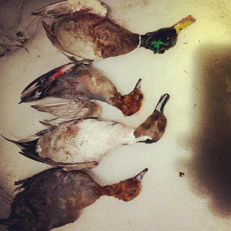 Их было у нас .Не знай кто как, но в гуся мы не попали, илу уже ушел, или еще не пришел. Скорее всего и первое и второе. В среду делали разведку. В полях жесть, половина посадок не проездная, там где оттаяло жижа, но благо машина едет на грязевой резине. Нашли немного гуся, хорошее кормовое поле, от асфальта далеко, настораживали свежие следы трехколесного вездеходика. Ну да ладно. Занесли в поле пару кубов сена жухлого (копать категорически нельзя, углубились только на штык, а дальше мерзлота). Лежаки замаскировали. В четверг охотились. Гусь был, но эшелонами пер и пункта А в пунк Б. Заитересованности 0. Отзывчивость 0. Скучный короче гусь. Получилось кое как уйти от нуля. Вечерка показала, что делать тут особо нечего, можно лежать и ждать чуда, но прогноз, ледяной северный ветер с проливным дождем сделал свои правки в наши планы. Знакомые команды собрали все и уехали парится в бане )). Пятницу посвятили разведке, катали новые районы искали. Гуся сдуло. Совсем. Невнятные табунки в разных направлениях. Присады больше не нашли. Нашли отличное кормовое поле дискованной кукурузы, на ней лужи. Утки море. Но это не про нас, не за ними мы туда ехали. На одной луже сидят 2 парня, с чучелами, манками, лежаками… Подъехали пообщались, они от холода аж синюшние, дождь выгнал их из лежаков, сделали себе засидку в кустах. Сидят зубами стучат - красавцы, как же им хотелось гуся. Как выяснилось, на этом поле за 3 дня они взяли 3 одиночки заблудших. Так же жаловались на пассивность гуся, тупо летит мимо. Ну тут мы и приняли решение ехать в другой район к друзьям, шулюм варить да с подсадными посидеть. Сместились севернее, ветер тот же северный, холодно, пролетка летит, но селезни к подсадной не хотят идти. Короче покатались, грязь, дождь, обжигающий ледяной ветер. Но мы довольны, обсохнем, в кроватке сутки поспим и будем дальше думать куда податься ![]() Как сказал Федор Конюхов - не дома же сидеть )) |