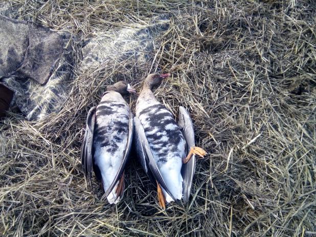 Очередная поездка не заставила себя долго ждать и мы помчались вновь на Саратовские просторы. Главное в гусином деле не цепляться к одному понравившемуся месту, нужно все время искать птицу, она есть, только ее найти обязательно нужно, а уж потом охотиться. Понравившееся место охотнику очень часто не нравится гусю…. И мы нашли в этот раз отличное место… С огромной лужи при подъезде слетело 11 гусей, вокруг озимые и пашня с убранным ячменем. По количеству помета поняли, что птица тут находится постоянно, а людей в округе 3-5 км нет – ИДЕАЛЬНО! Долго спорили про маскировку – лежак, яма, все выходило не очень, пока не приметили кустарник недалеко от лужи… В нем вырубили местечки и расположились внутри кустов, как истинные зенитчики в посадке )))… Обустроили лагерь в 2 км от места охоты, по 50 грамм за приезд, сварили супчик из гуся добытого нашим другом Ромой и спать… Утром в 5-00 на месте, а оно оказалось «золотым»… Птица шла низко и реагировала на наши манки все время петляя и проходя на чучела через наш скрадок. Стреляли уже не на 2, а на 3- (три с минусом), но результат был отличный. Даже видео получилось сделать, пара нормальных налетов с добычей и штук 5 мастерски профуканых… Позже все покажу… Теперь отдых и подольше…. Устали за три недели… |