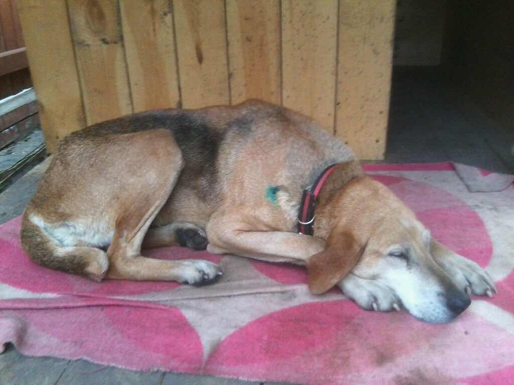 Найдена русская гончая, сука лет семи, в ужасном состоянии. Найдена в поселке Мехзавод, станция Козелки в поле умирающей. Девушка прогуливаясь со своими собаками в поле увидела ее лежащей на земле, попыталась приподнять но она не стояла. Она подумала что ее клещ укусил и отвезла в ветеринарку, там сказали что нужна срочная операция или собака умрет, вся ее полость матки и петля были наполнены гноем. Собаку прооперировали, взяли с девушки 5500руб. Собака сейчас у нее в сарае, идет немного на поправку. Помогите отыскать ее прежних хозяев, или найти новых. У собаке на шее след от ошейника. тел. 89277558853