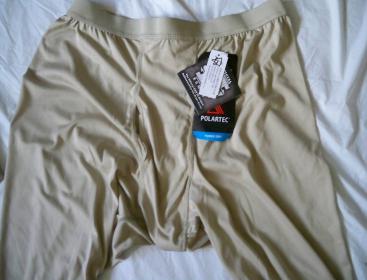 Слой 1. Представляет из себя комплект футболки с длинным рукавом и кальсон, цвет десерт санд. Задача этого слоя состоит только в отведении пота на следующие слои, таким образом этот слой не согревающий а только потоотводящий. Комплект выполнен из PolartecR Power DryR. Размер комплекта таким образом подбирается так чтобы был максимально обтягивающим. Вырез на футболке О образный, на рукавах имеются отверстия для больших пальцев рук. По тактильным ощущения материал очень приятный к телу, напоминает шелк. При примерки и фотографировании при температуре окружающего воздуха в 25 градусов по ощущениям в 1ом слое прохладнее чем без него. Вес 320 грамм