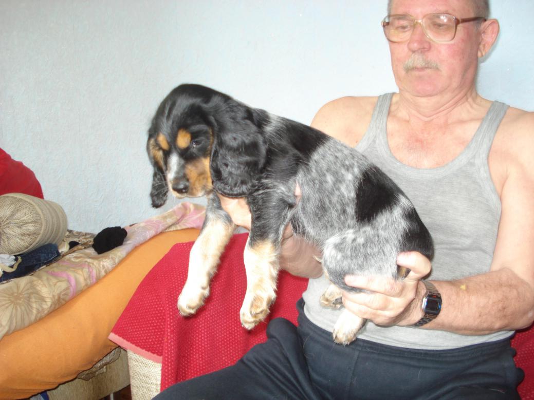 Собаке 1.5 года. зовут Найк. Хозяева отказались по семейным обстоятельствам.(хозяин сменил работу) подробнее не знаю. Кобель черно-пегий в крапе с подпалом. Хозяин охотник. Бытовая дрессировка есть. В поле его видел тока летом на натаске. На тот момент подготовка тока начата была. Сейчас не знаю. Документы, прививки, веткнижка все есть. Оч. Хор. получил в младшей группе летом. Фото тока со щенков. взрослое фото выложу как пришлет. В данный момент собака находится у кинолога областного общества Инессы Ляховской. тел. 8 927 687 66 44 В качестве цены желательна компенсация расходов на содержание и транспорт в размере 2000. Но... если собака пойдет в работу. И особенно если будет в последствии выставляться на выставках и испытаниях, цену можно снизить и очень сильно. |
