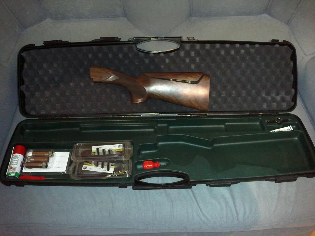 Комплектация соответственно полная(на фото), как была при покупке: регулируемый приклад, пластиковый кейс, сменные чоки и т.п.
