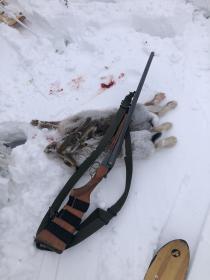 Закрыл сегодня одну из путёвок толи тупым толи очень ленивым зайцем. Увидел скидку с дороги. Заряжаюсь , встаю на заднеприводный снегоход и пошёл по скидке к кустам. Не доходя до куста метров 20 выскакивает заяц. Пока я вскинулся он уже забежал за наметённый бархан и прикрываясь им убежал метров на 60-70. Выстрелить так и не получилось. Стою и смотрю зайцу в след . А он отбежав метров на 300, встал около кустов столбиком и смотрит на меня. Я на него. И убегал он как то спокойно , без излишней прыти. Развернулся я и пошёл к машине, а заяц смотрел мне в след и ехидно наверное ухмылялся. Отъехал я километров на 5 и пару часов покружил по новым местам. Одного зайца потропил, но пришёл к пустой лёжке . Как он убежал я не заметил. Умотавшись прокладывать колеи в снегу решаю ехать домой. Но что то меня заставило вернуться к первому зайцу. Подъехал на тоже место , но захожу по большому кругу метров на 400 с зади к тому кусту где заяц столбиком стоял. Вижу пару сдвоек впереди . Всё я весь на готове. И не доходя метров 15 до куста вновь выскакивает мой знакомый. Одним выстрелом метрах на 30 я его добываю. Специально обошёл это место ещё раз по кругу , думая что это может быть другой заяц . Но следы показали что ушастый здесь был совершенно один. Поленился он убежать куда ни будь подальше и залечь на оставшийся день в каких ни будь ебенях, вот и поплатился жизнью. Чему я был несказанно рад. Первый зайчик 2021 .