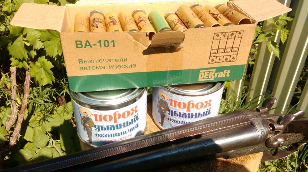 В довесок к ружью идут полтары банки дымаря и 50 шт папковых гильз.