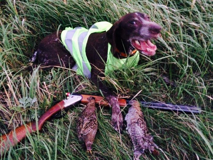 Поохотились после работы оперативно. В 19:30 приехали в угодья 15 минут- стойка ,штук семь взлетели ,дуплет- мимо. С тяжелым сердцем иду дальше, солце садится ... Может это единственная сегодня работа , все мои усилия что бы выбраться на охоту напрасны.Иду размышляю :- " надо было взять полуавтомат, а вдруг их мало в этом году , может и хорошо ,что не попал, работа то была..." Потянула ,разбирает новые наброды и становится мордой в пашню .подъём!Есть одна! Отпустило ). Минут через двадцать уже в сумерках длинная потяжка, стойка ...Подхожу и срывается стая голов тридцать. Бью одну, вторым мажу. Тут же перезаряжаю и провожаю взглядом слившуюся со стернёй ,последнюю взлетевшую позже основной стаи курочку ,как это часто и бывает на охоте по куропаткам . Поздравляю собаку , фотографирую.Двадцать минут в сумерках , двадцать в темноте идём к машине.Устал как собака и собака теперь крепко спит на своём месте. Год за годом среди недели устраивать охоты по вечерам все труднее, дольше собираешься , дольше востанавливаешься , дела какие то все.Но тем безогляднее мчишься в поля , пока есть силы стараешься объять необъятное . Вроде вот только начинал охоту с легавой, а уже семь лет собаке и только глядя на фотографии понимаешь ,что пройден не малый путь. Сколько так еще будет? Ни кто не знает ...Потому считаю грешно имея сегодня здоровье и хоть чуточку времени не воспользоваться этим временным стечением обстоятельств.))