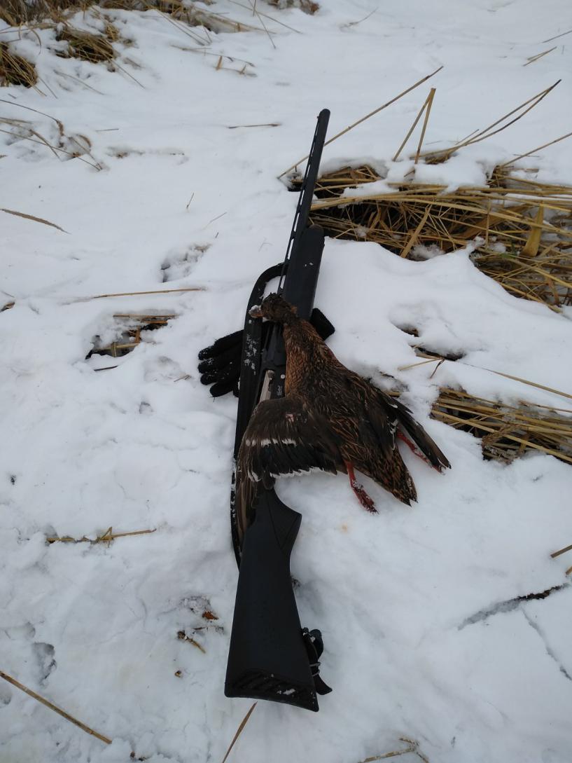 Как понял, утка плотно сидит в камышах на больших заливах, не замерзших. По выстрелам соседей понял или берегом с собакой или на лодке по камышам, но в одного не знаю как такое сделать.