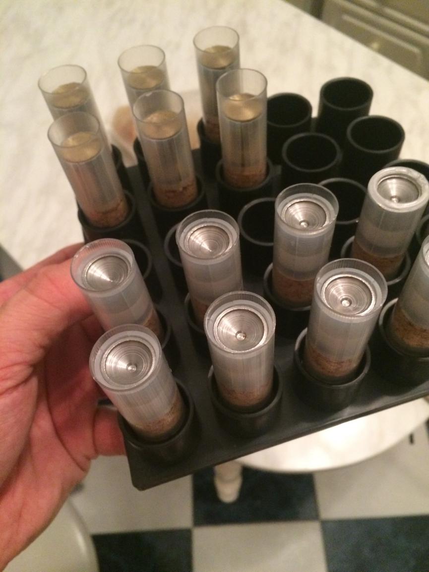 3. И вот такой еще нарыл "2,1гр пороха Сокол, пыж контейнер ГП с обрезаным амортизатором, обтюратор на порох,на обтюратор стакан от контейнера, 28 грамм дроби номер