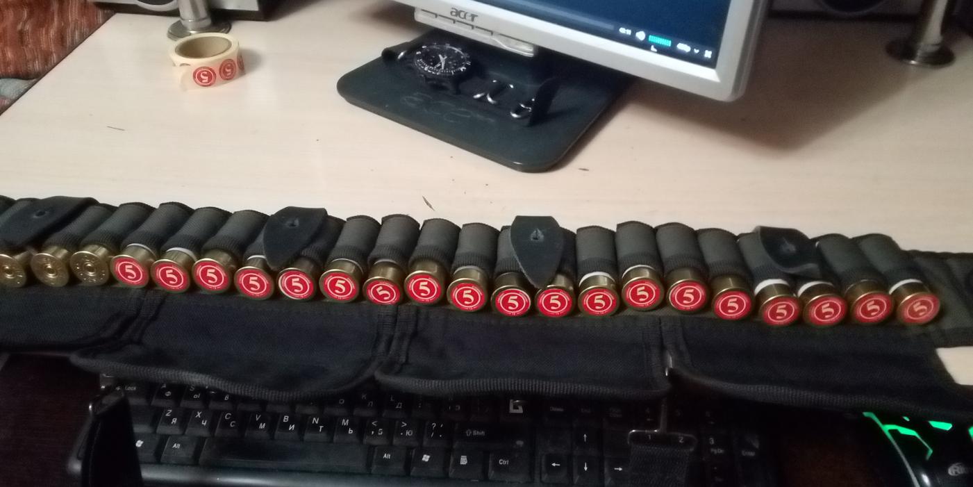 Рецепт классический для станка Lee Load All II: Гильза 12 калибра б/у, КВ-209, Сокола по "соколиной" мерке (примерно 2,05 гр), какой-то пыж-контейнер из старых запасов, подходящий по высоте, дробь №5 (32 грамма), закрыл звездой. На донце наклейку от Стикханта. Если не приглядываться, то от заводского патрона не отличить.