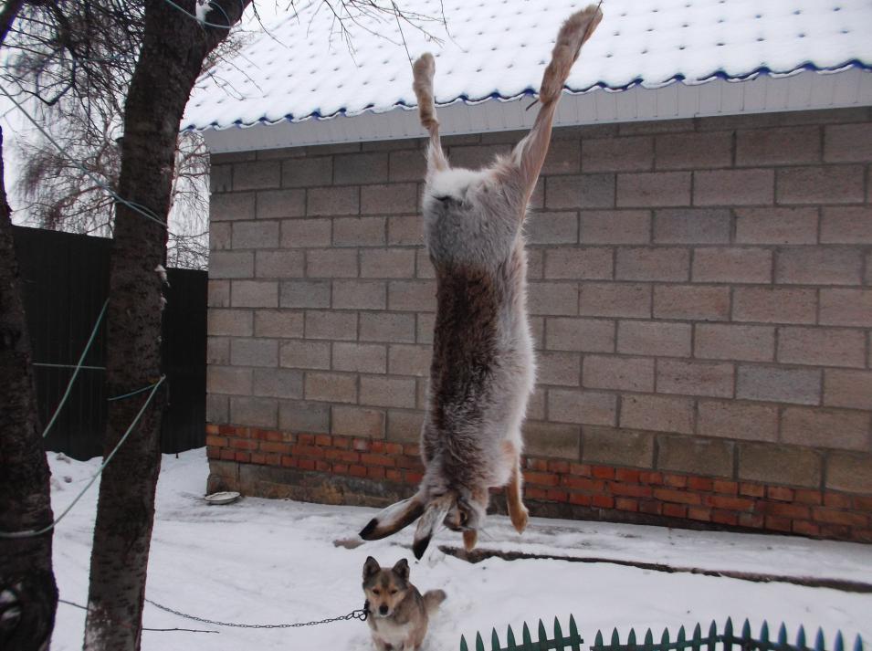 А я сегодня по старинке- ножками ,ножками. И опять дубль. Первого зайца протропил до густой травы, где он меня надул оставив только гонный след. А вот второго взял очень легко. Зай сделал всего одну сдвойку по полевой дороге и улёгся в траве в 8-10 метрах от дороги. Я шагнул пару метров по спрыжке в траву и поднял его. Вторым выстрелом добыл. Так как дома были неотложные дела охоту пришлось прервать. Даже трофей в полевых условиях забыл сфоткать, вспомнил об этом уже перед освеживанием. Управившись с делами до 12-00 решаю ещё разок сгонять в угодья. Следы нашёл быстро. Ушастый шёл явно на лёжку. Сдвойки ,спрыжки ,ну явно опытный боец. Так оно и оказалось,увидел я его уже бегущим от меня метрах в 70-80. Оставив этого зайца ,решаю проверить другой участок угодий.Но полазив безрезультатно пару часов решаю вернуться к поднятому зайцу. Зашёл с противоположной стороны от места подъёма метров за 500. И не прогадал .Зай побегав немного, вернулся на своё место и улёгся метров в 50 от прошлой лёжки .Подпустил в этот раз метров на 15. Третьим выстрелом только смог его достать. одна дробина попала в глаз и зая начал вытворять кульбиты и орать ребёнком. Ужасный крик. Я подбежал к нему и хотел было прижать к земле стволом что бы добить ,но сделал это как то неуклюже ударив стволом о землю. Результат -сломал приклад, точнее кусок откололся. Радость от добычи сразу испарилась. Дома немного покумекав решил просто приклеить на суперклей. Вроде держится крепко,завра испытаем. От сюда вопрос к знающим -это опасно или нет ,всё таки тыльная часть ружья. Или купить новый приклад? Вот и не знаешь ,где найдёшь где потеряешь.......