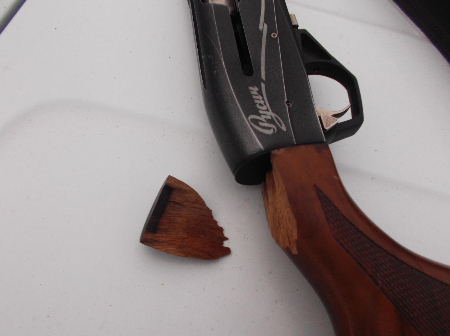 В прошлом году случилась такая же проблема. Скатывался на лыжах и в самом низу, почти когда уже остановился, ружье на плече пошатнулось слева на право перед ногами именно в том месте где рос единственный тонкий кленок толщиной буквально 1,5-2 сантиметра. Задеваю прикладом об него и откалывается боковая щечка на прикладе. Досада. Склеил все супер клеем. поставил на струбцину. Вот по сей день полет нормальный, Весной пострелял довольно много с него. Трещин нигде не вижу. думаю клей Вам поможет, и да с полем. |