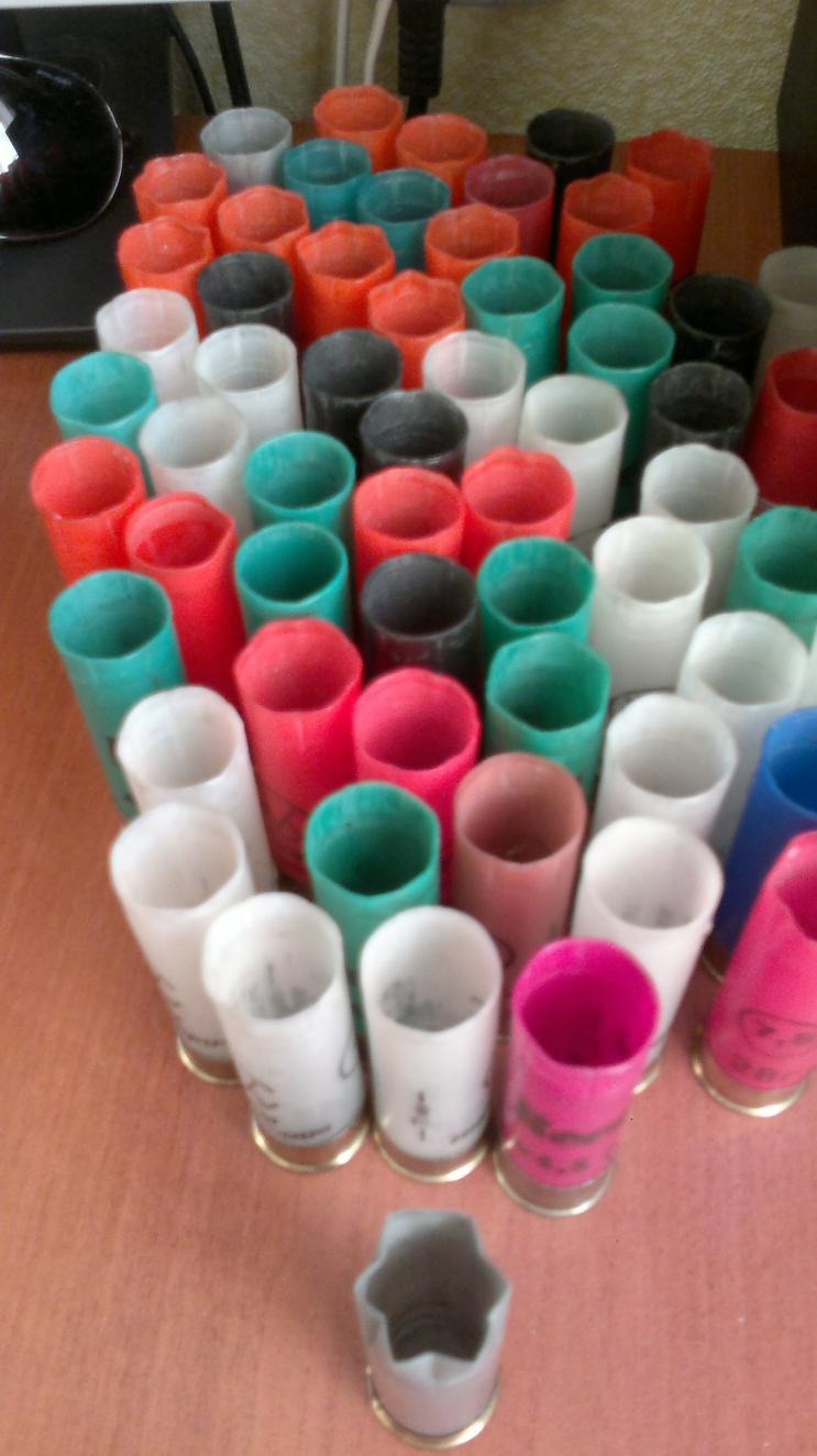 Мне в течении того года(в этом ещё не искал) не попадались пл.пыжи, только пыж-контейнер. Я брал пыж-контейнеры садился перед телеящиком и канцелярским ножом отрезал лепестки контейнера.
