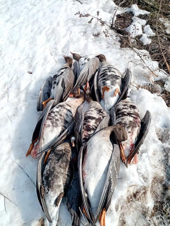 Вчера 4 стаи белолобого видел, штук по 200 каждая, гусь пришёл, гуся много.