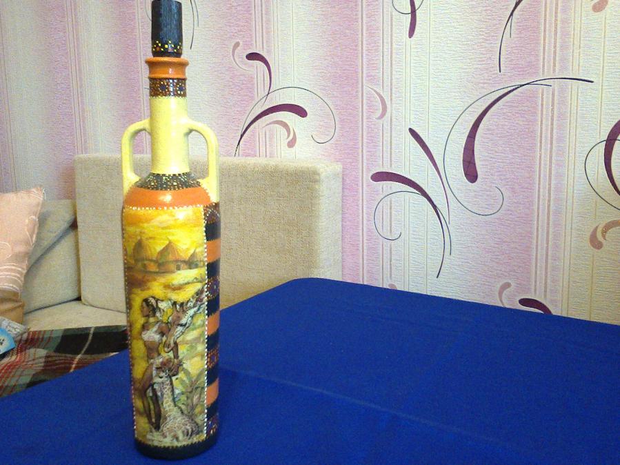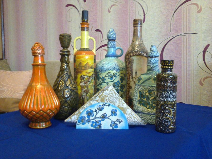 Озвучены цены только на бутылки. От 300 до 500 р. Всё остальное как образец её работ. Хотя... Как договоритесь.