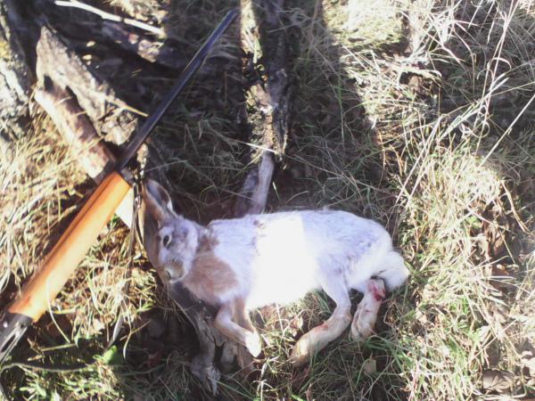 здравствуйте всем, в субботу закрывал охоту на утку, приехал на речку которая как оказалась замерзла, прошел по полям на куропатку и вот результат - зайка! ну как то так :)