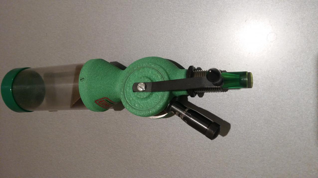 Модель дозатора для винтовочных патронов, корпус дозатора- чугун литье, резервуар пластик, бафл латунь от ФС63 , дозатор качественный, добротный! Вешает отлично: пластинчатые пороха от b&p g3000, mb36, m92s точность 0.01-0.02, гранулированные типа салют, сунары и.т.д 0.005 (то есть погрешность весов...), хотя порох c7 вектан (который как и бп тоже пластинчатый) вешает отлично как и сунары, как мне кажется из-за более толстой пластинки...