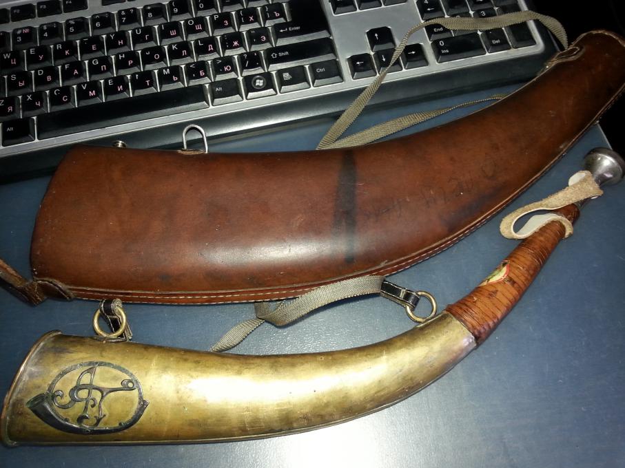 Ездил как-то на Управу к одному деду смотреть ружье ТОЗ-Б, с ружьем получился не срост - слишком оно было ушатано. Дед все распродовал из своей охотничьей "коллекции" (из разговора я узнал, что он является заслуженным экспертом, если не ошибаюсь 1-ой категории (по породе гончие)), т.к. ему нужны были деньги на лекарства, в свою очередь я уехать от него просто так не смог, надо было помочь ему с деньгами, поэтому решил приобрести у него охотничий горн. Собственно его и продаю тут, т.к. в арсенале гончака у меня нет), думаю будет актуально для гончатников. Горн и чехол к нему полностью ручная работа. Горн рабочий, звук ооочень сильный
