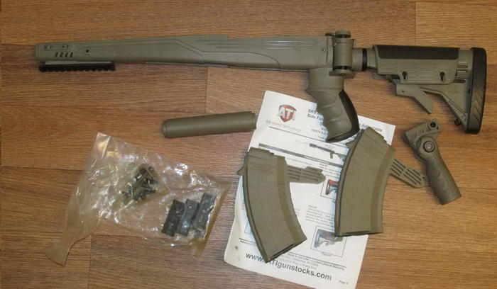 Выставляю на продажу ложе ATI, переднюю рукоятку и два магазина TAPCO на 20.