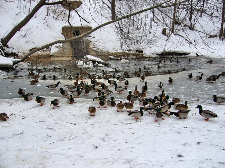 Крякаш как на подбор.))) Покормили, полюбовались))... Когда уходили, подняли партечку куропаток.