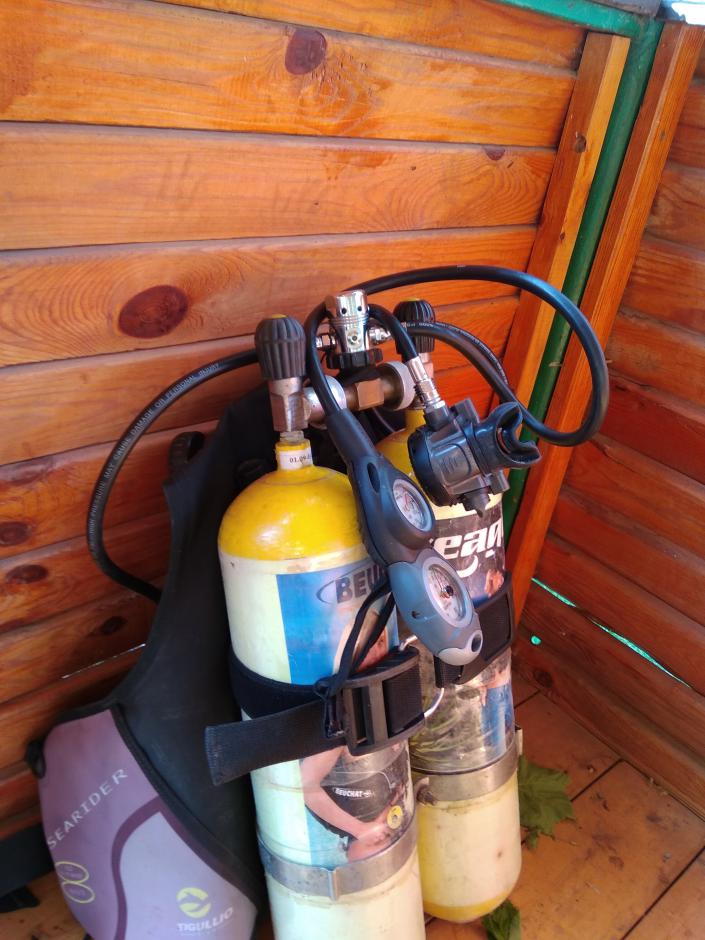 Два баллона спаренные 2 по 7л по 300ат, редуктор Калипсо, +жилет.