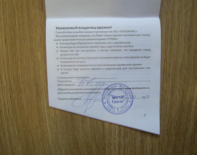 Продаю травматический пистолет Гроза-21. Куплен в 2013 году.