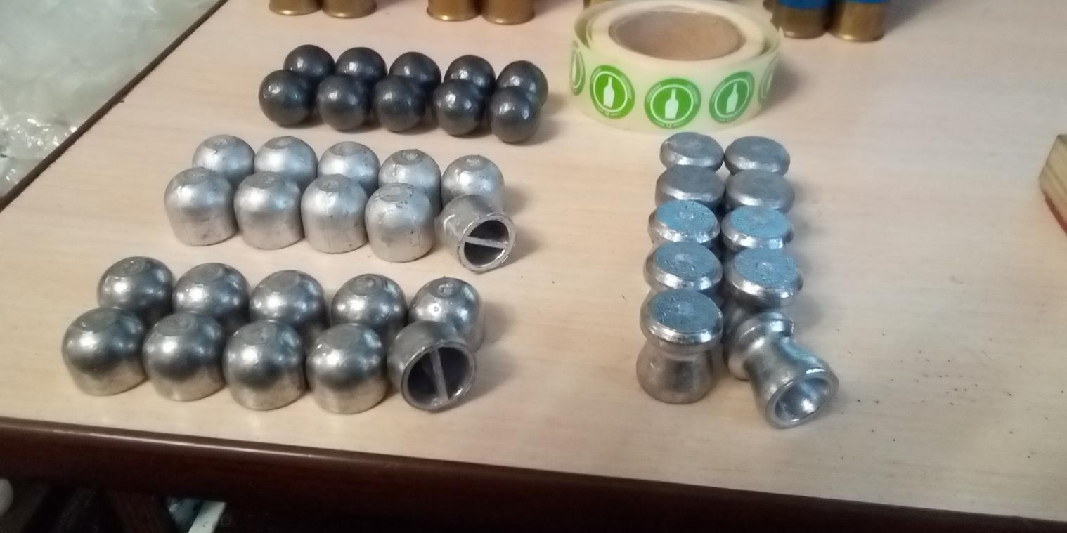 Достал, посмотрел что есть. Четыре вида пуль - маленький и стандартный колпачки Lee, шар Lee и Диабло с Ганзы. Подобрали с дочкой под них пыж-контейнеры, Вика набрала под каждый вид пули свой цвет гильзы и начали таинство снаряжения.
