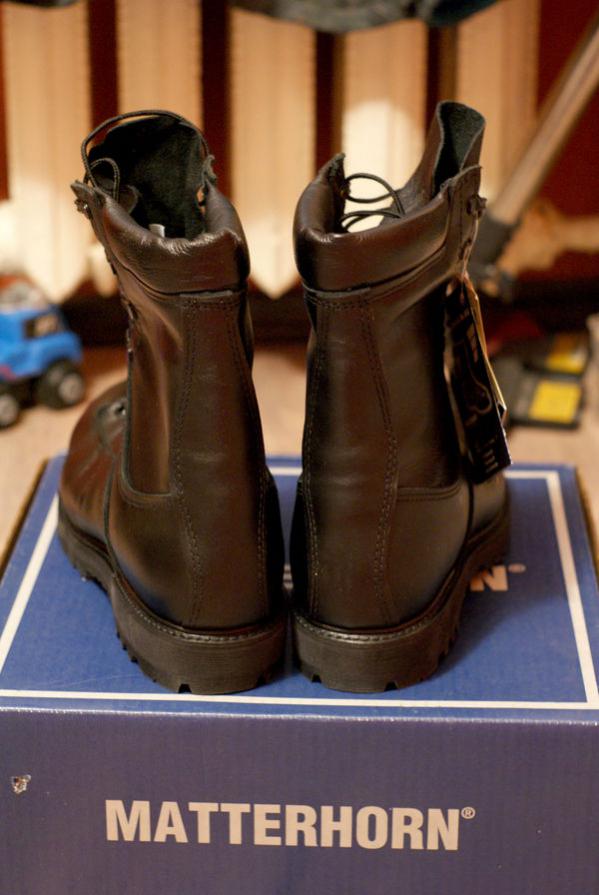 Продаю одну пару Matterhorn 1697 размера 10.5 Wide. Те же 1997, но высотой в более человечные 8 дюймов вместо 10-ти. Совершенно новые, с бирками и упаковкой. Надеты ровно один раз, чтобы понять, что чуть-чуть великоваты. У меня лапка длиной 291 мм и шириной 108 мм. По ширине подходят, по длине чуть-чуть великоваты. Если хорошенько затянуть, пятка всё равно немного гуляет. Будут впору человеку со ступнёй длиной в 295--300 мм и шириной в 110 мм.