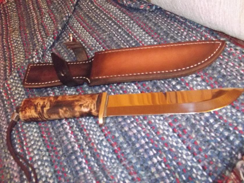 Продается нож ручной работы (из личной коллекции). Нож большой,сталь клинка Х12МФ с термической обработкой,клинок был заказан в г.Ворсма,"зеркало",гарда латунь,рукоять березовый кап,тыльник резной из рога лося, темляк кожа с бусиной из рога косули, ножны-кожа, сшиты специально для этого ножа исключительно вручную (РУКАМИ),на фото выглядит скудновато, в руках-другое дело, отдельное фото пары клинков изготовленных на заказ, концевик пропущен через всю рукоять и стянут,продается не спешно, естественно с незначительным торгом (непосредственно при осмотре), нож своеобразный, на любителя крупных ножей, нож полностью изготовлен и собран Романом Серковым ( с учетом моих пожеланий). Продаю ввиду финансовых проблем....как всегда....ценник усматриваю 15 тыс.рублей (на весенней выставке нож был оценен в 25.....) Не стесняйтесь....приезжайте....смотрите. Подойдет как хороший и оригинальный подарок. НОЖ НОВЫЙ! ЗАТОЧЕН. тел.+7 927 205 6 один 18, Сергей.