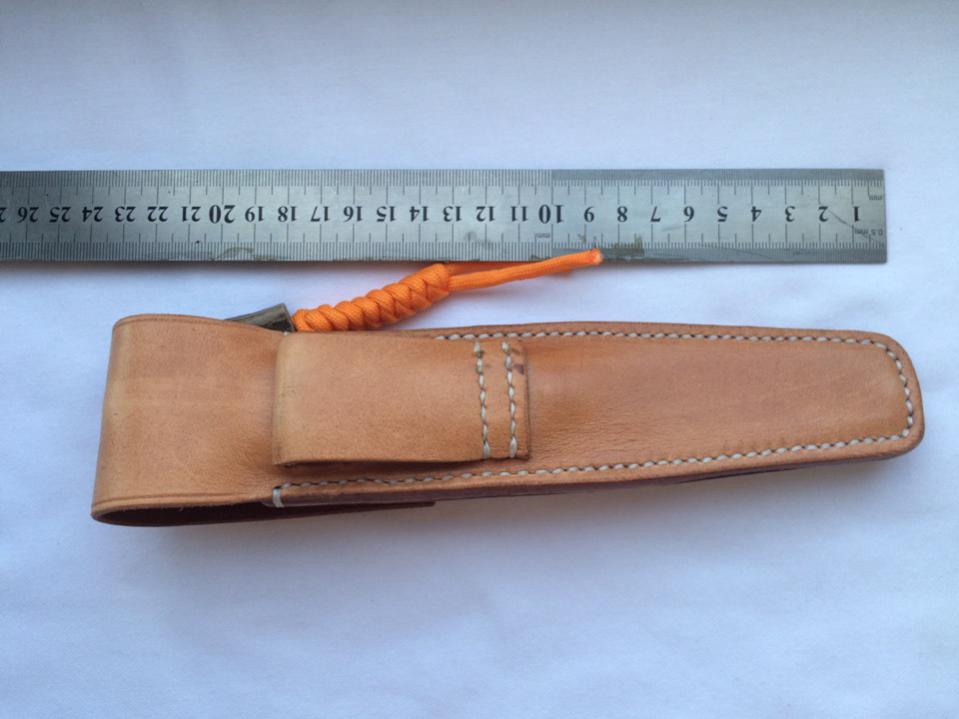 Нож изготовлен в кизляре,покупался за 3500,ножны шил на заказ за 2000,цена продажи 3000 +торг. Нож отличный,сразу после покупки был переточен у хорошего мастера под другой угол,для работы именно по мясу. Толщина обуха 3,5 мм,остальные габариты видно на фото,рукоять венге,ножны кожа растительного дубления,темляк 550 паракорд и рог косули,твердость по роквелу 62-64. Сталь отлично откована,из пробега,после переточки два крупных барана,от забоя до полной разборки туши,без какой либо подводки,нож остался в таком же рабочем состоянии. Очень резуч,в руке лежит очень удобно несмотря на небольшие размеры. Отличный компактный помощник для любых условий.