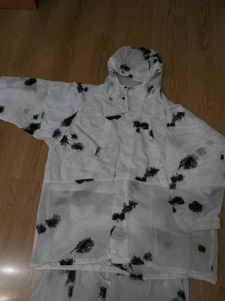3. Зимний маскировочный костюм «Клякса» производство Сплав. Куртка расстегивается, капюшон утягивается.