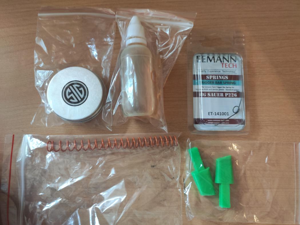Блок боевой пружины P226, new style long, Sig в сборе Направляющая возвратной пружины, нержавеющая сталь, Custom Возвратная пружина прогрессивная, оранжевая, 16lb, AC Пружина спускового крючка -5%, ET Оригинальные накладки BLK, Sig Улучшенная пружина для магазинов Sig +10%, ET -2шт Ограничитель магазина Масло и смазка Кобура поясная открытая SIG-SAUER P226 «Скат» Бурс Наушники активные Цена 85000 руб продажа комплектом. |