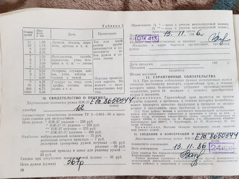 Иж27Е1С 1986 год выпуска,паспорт и всё описание,куплено 1.5 года назад и мною ни сделано ни выстрела.Дерево заказное.Ружье в прекрасном состоянии. Отдам за 15 как и брал. 89272040400,Сергей.