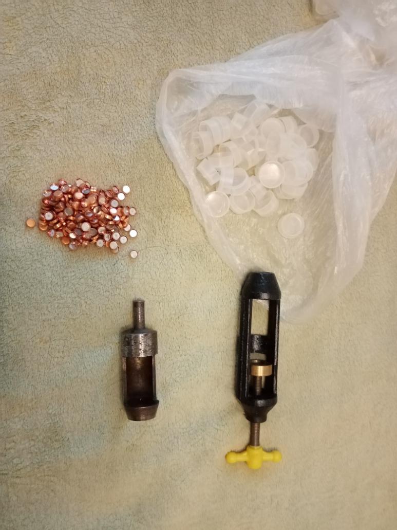 Продаю закрутку 12 калибра - 500 руб, пыжеруб - 500 руб, капсюли центробой по 2 руб шт (в пакете 100 шт), пыжи-заглушки под латунь 12 калибра 200 руб упаковка (около 150 шт). тел. 89297 девятнадцать 34 пятьдесят четыре