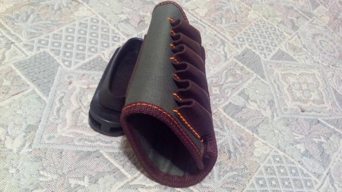 3) красивый патронташ на приклад, новый не ставился, зеленый с коричневым и оранжевыми нитками. вживую красивее чем на фото, приятный на ощупь, тактильно должен плохо пачкаться и легко мыться, быстро одевается, окно под антабку, липучка. 6мест. 800р