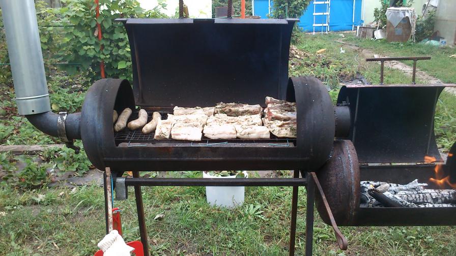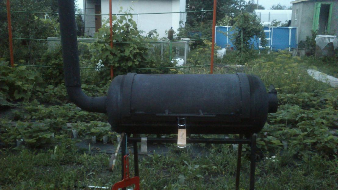 Нормалёк!!! Получается из маленького нижнего дым в верхний идёт - это уже коптилка. Ссылка на чертежи есть? Люблю поковырятся с железом и сваркой.