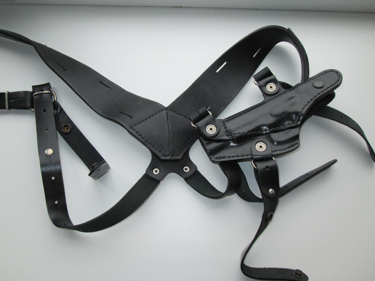 Предназначена для скрытого ношения и быстрого извлечения пистолета, в комплекте с наплечной системой. Цвет чёрный. Данная кобура изготавливается из натуральной кожи импортного производства и прошита высококачественными нитками со специальной пропиткой, повышенной толщины немецкой фирмы Gutermann. Цена 1.000 руб. Только самовывоз, Тольятти, Комсомольский район.