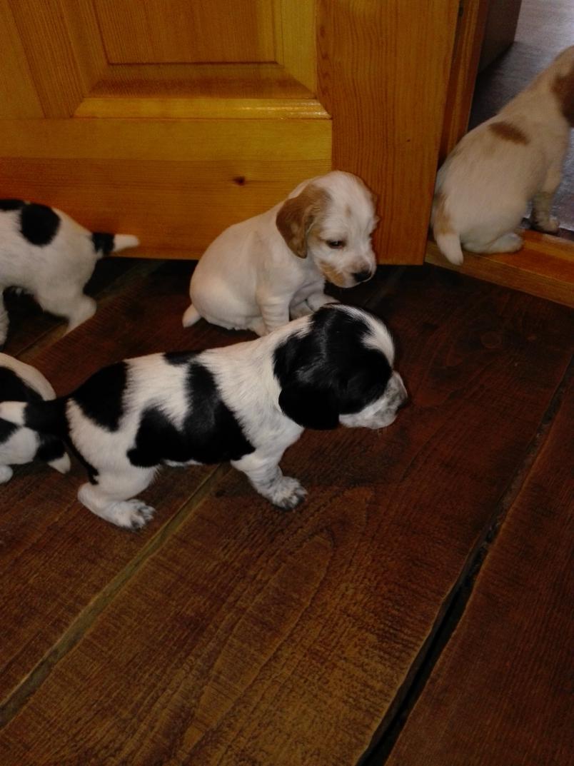 осталось 3 щенка: 2 черно-белых суки и бело-рыжий кобелек.