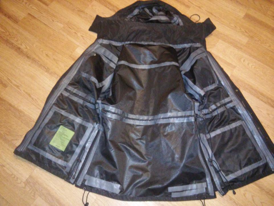 вот фото. все швы и молнии проклеены. на капюшоне несколько утяжек и проволка в козырьке для придания нужной формы. был бы нормальный размер или даже больше - не продал бы. а так я в него уже не влезу.