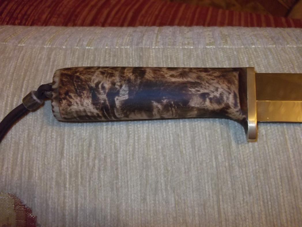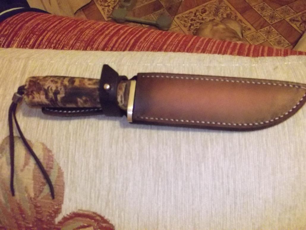 Продается нож ручной работы (из личной коллекции). Нож большой,сталь клинка Х12МФ с термической обработкой,клинок был заказан в г.Ворсма,"зеркало",гарда латунь,рукоять березовый кап,тыльник резной из рога лося, темляк кожа с бусиной из рога косули, ножны-кожа, сшиты специально для этого ножа исключительно вручную (РУКАМИ),на фото выглядит скудновато, в руках-другое дело, отдельное фото пары клинков изготовленных на заказ, концевик пропущен через всю рукоять и стянут,продается не спешно, естественно с незначительным торгом (непосредственно при осмотре), нож своеобразный, на любителя крупных ножей, нож полностью изготовлен и собран Романом Серковым ( с учетом моих пожеланий). Продаю ввиду финансовых проблем....как всегда....ценник усматриваю 15 тыс.рублей (на весенней выставке нож был оценен в 25.....) Не стесняйтесь....приезжайте....смотрите. Подойдет как хороший и оригинальный подарок. НОЖ НОВЫЙ! ЗАТОЧЕН. тел.+7 927 205 6 один 18, Сергей.